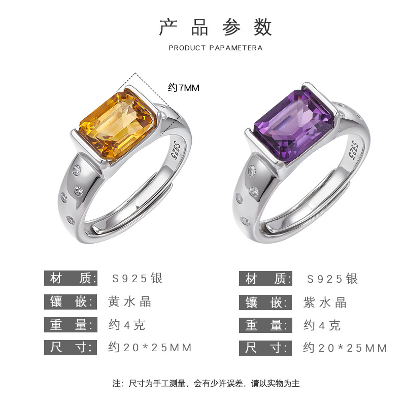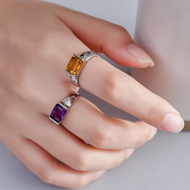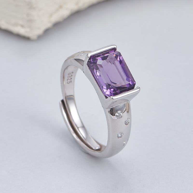 Amethyst Square Ring | 925 Sterling Silver | Adjustable Minimalist Ring