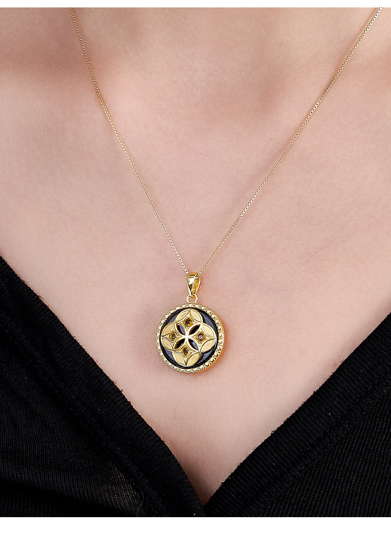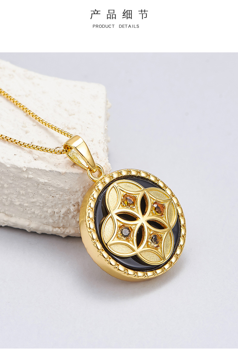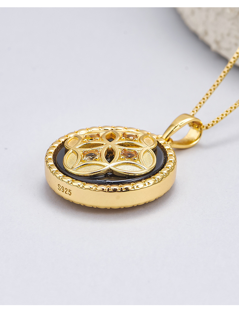 Black Agate Pendant | 925 Sterling Silver | Gold-Plated Geometric Necklace