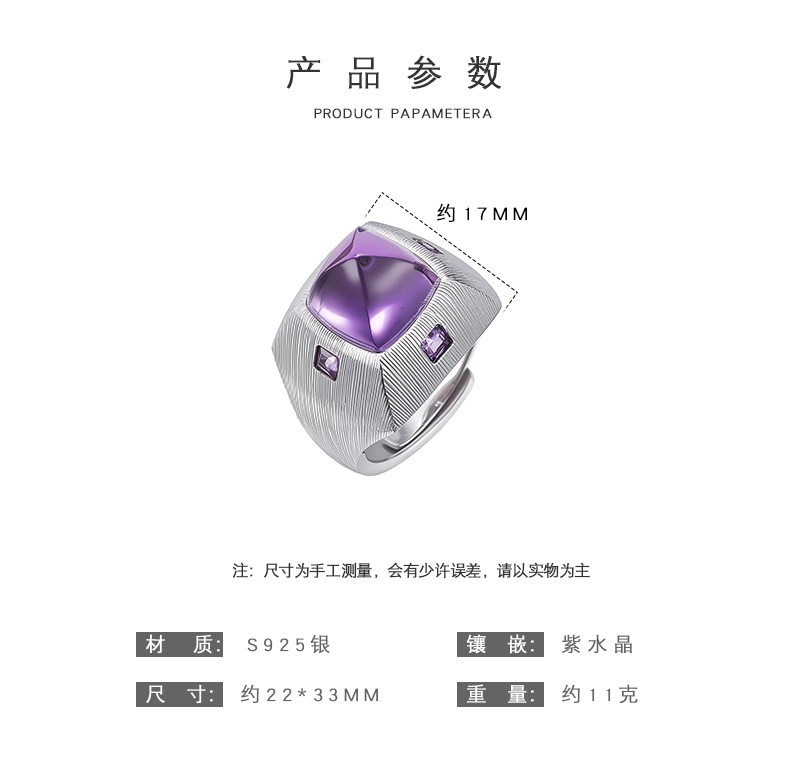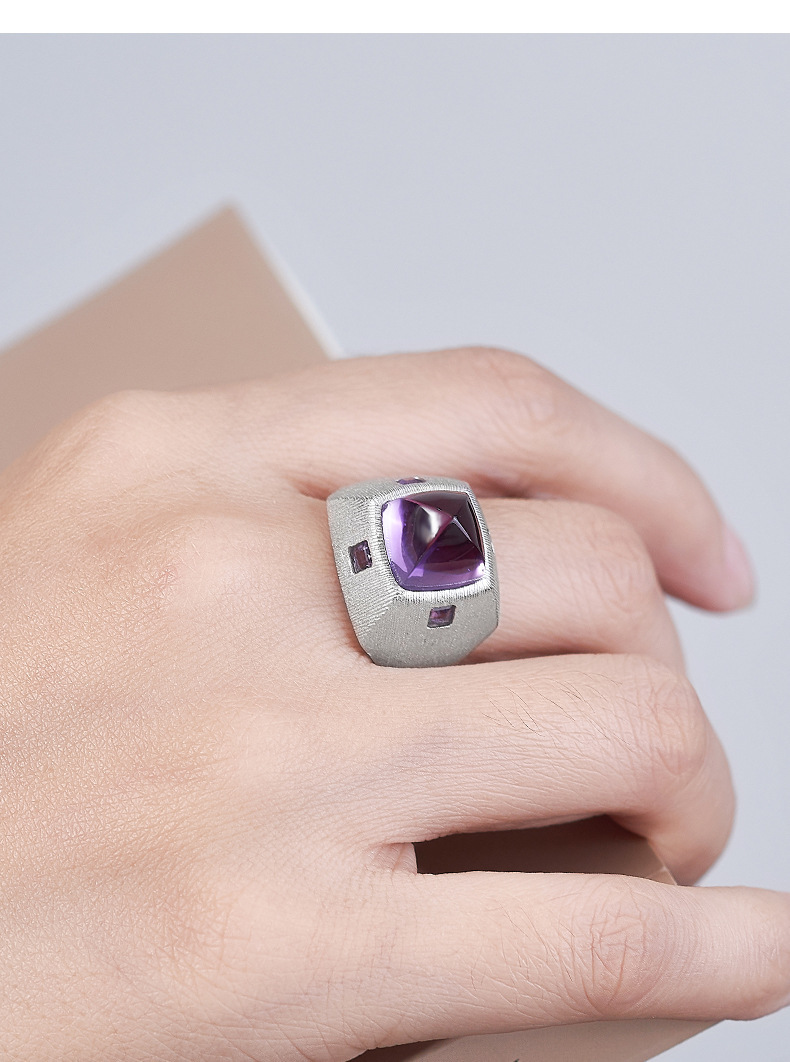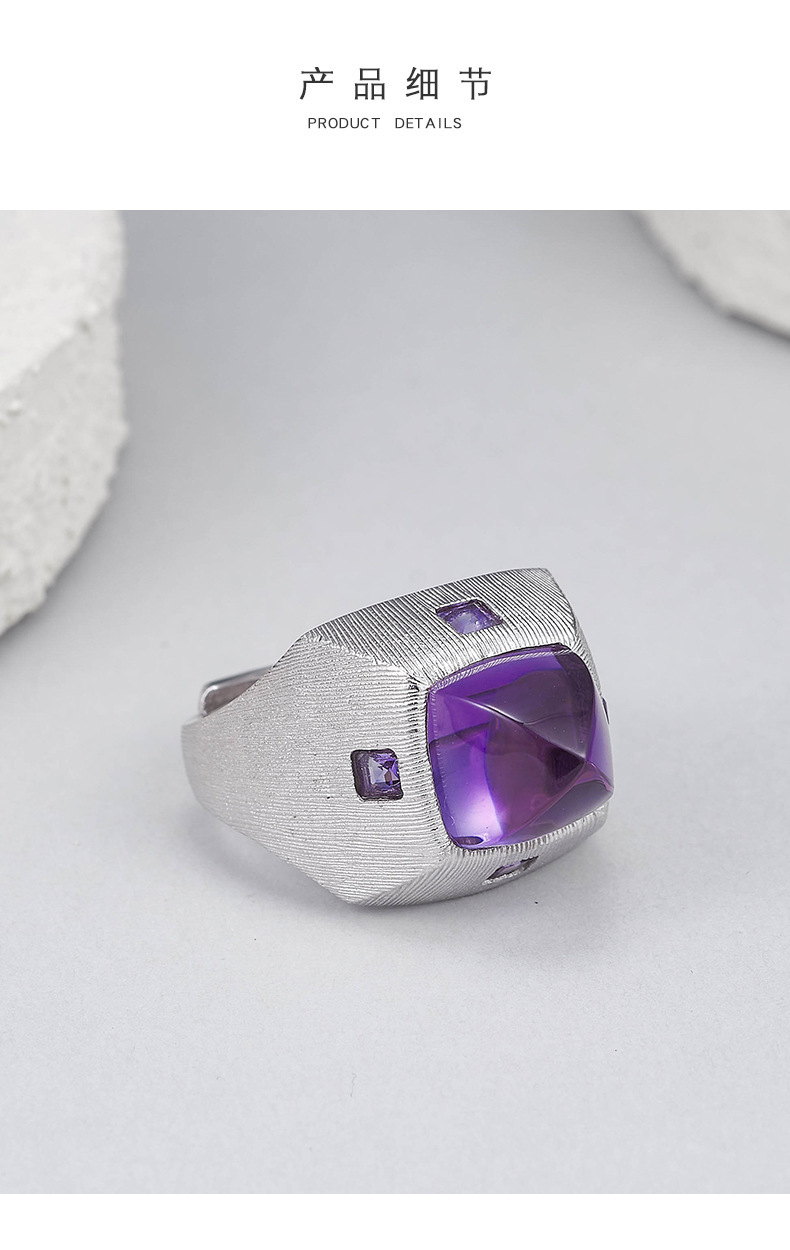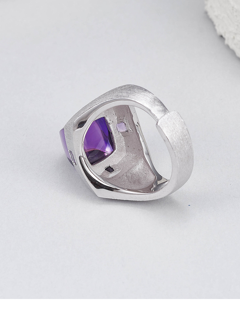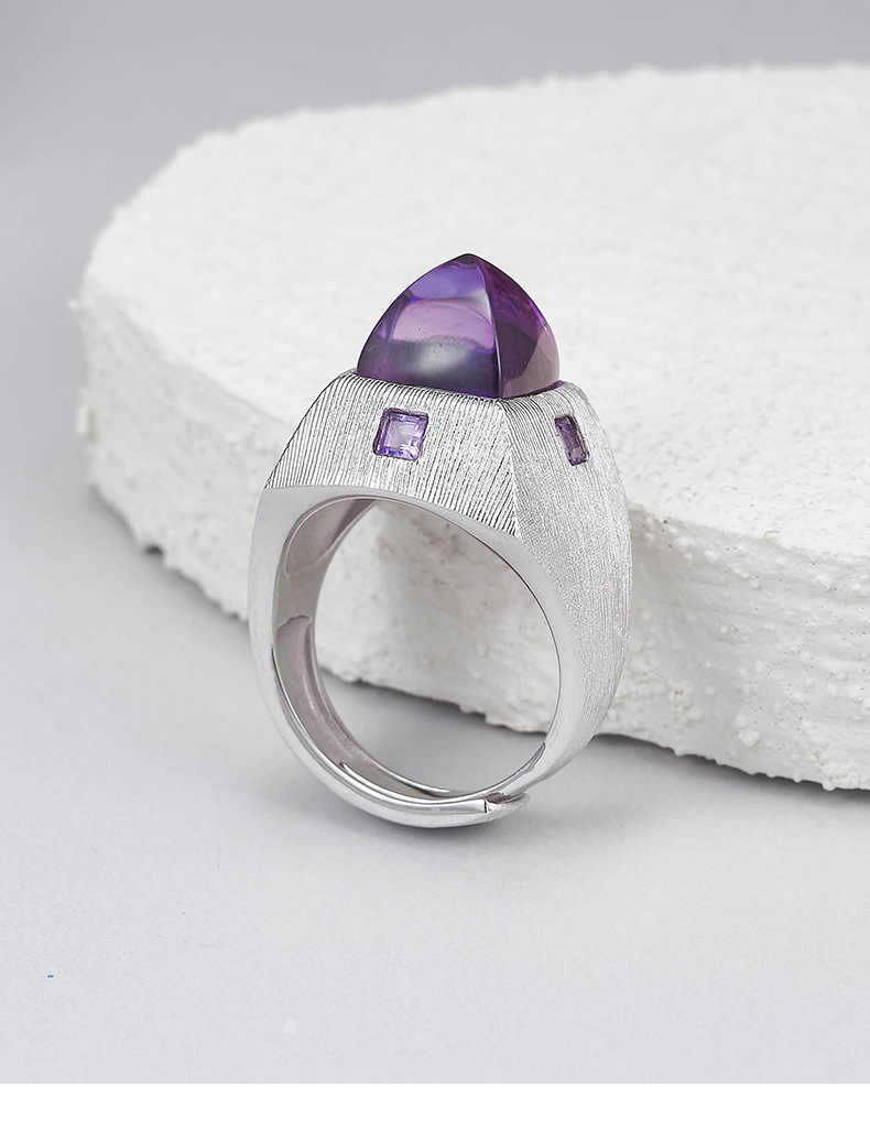 925 Sterling Silver Brushed Amethyst Diamond-Shaped Open Ring