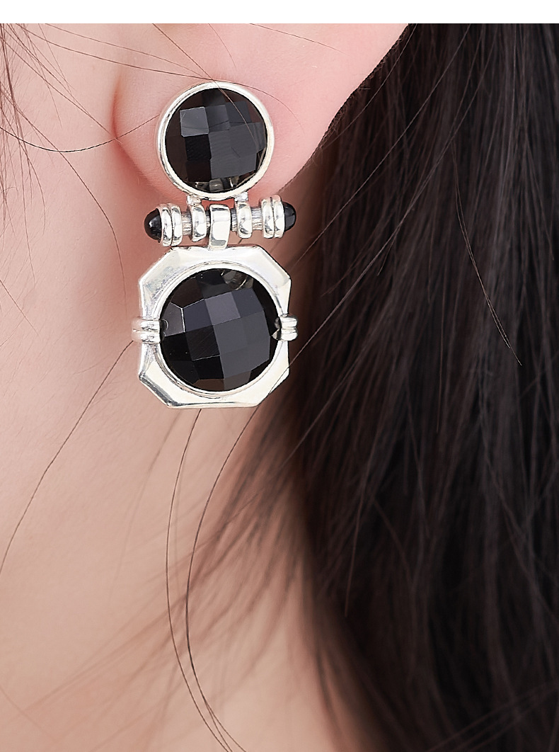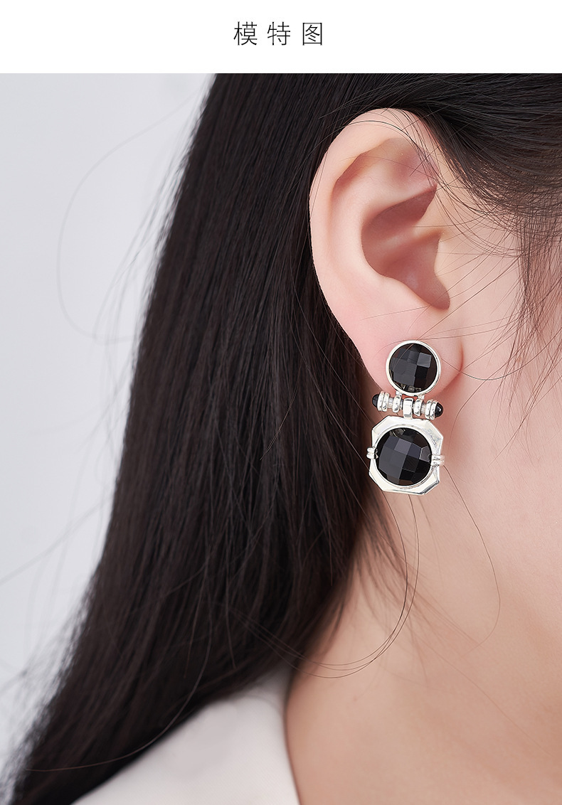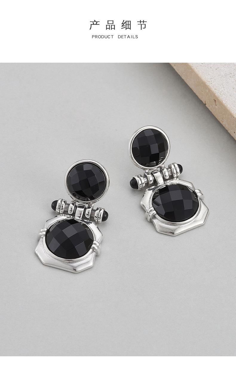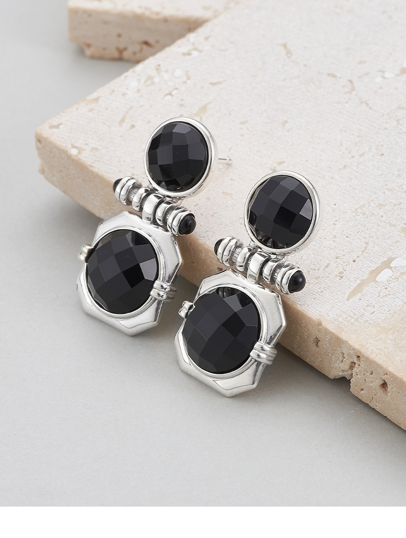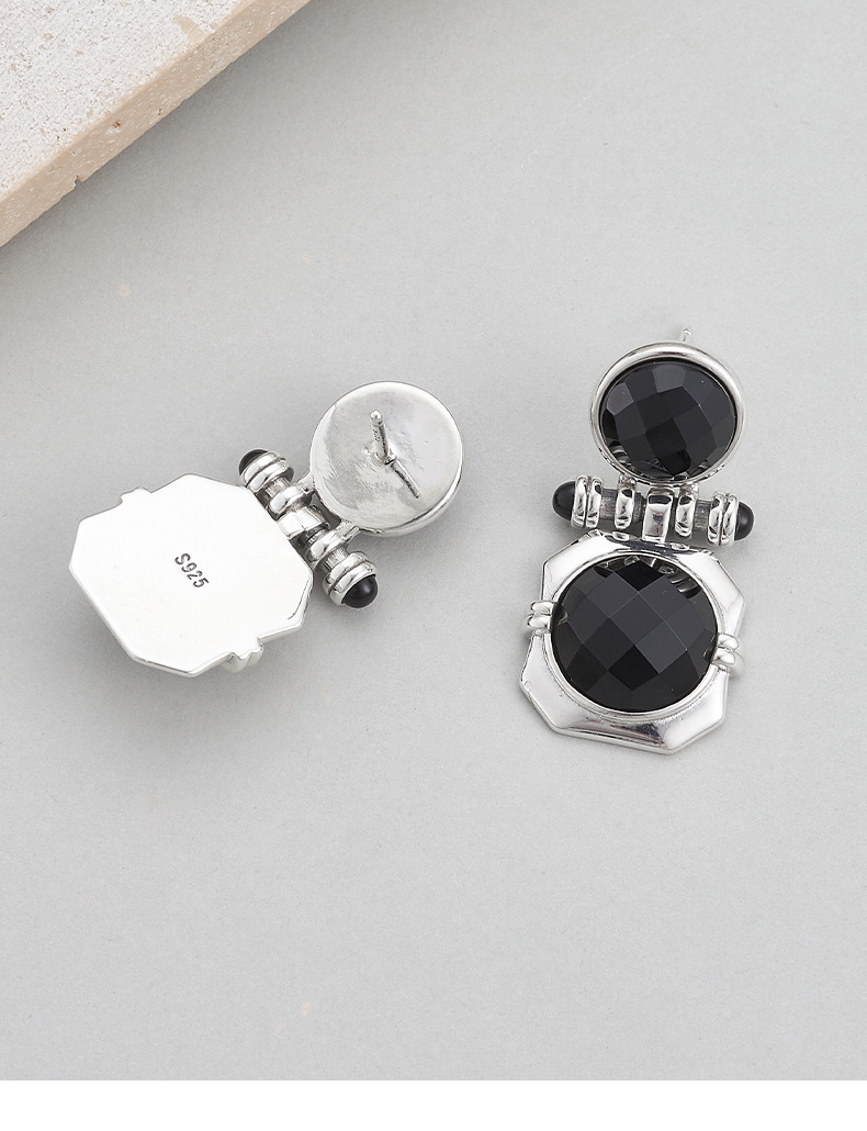 Faceted Onyx Stud Earrings - Solid 925 Silver Setting