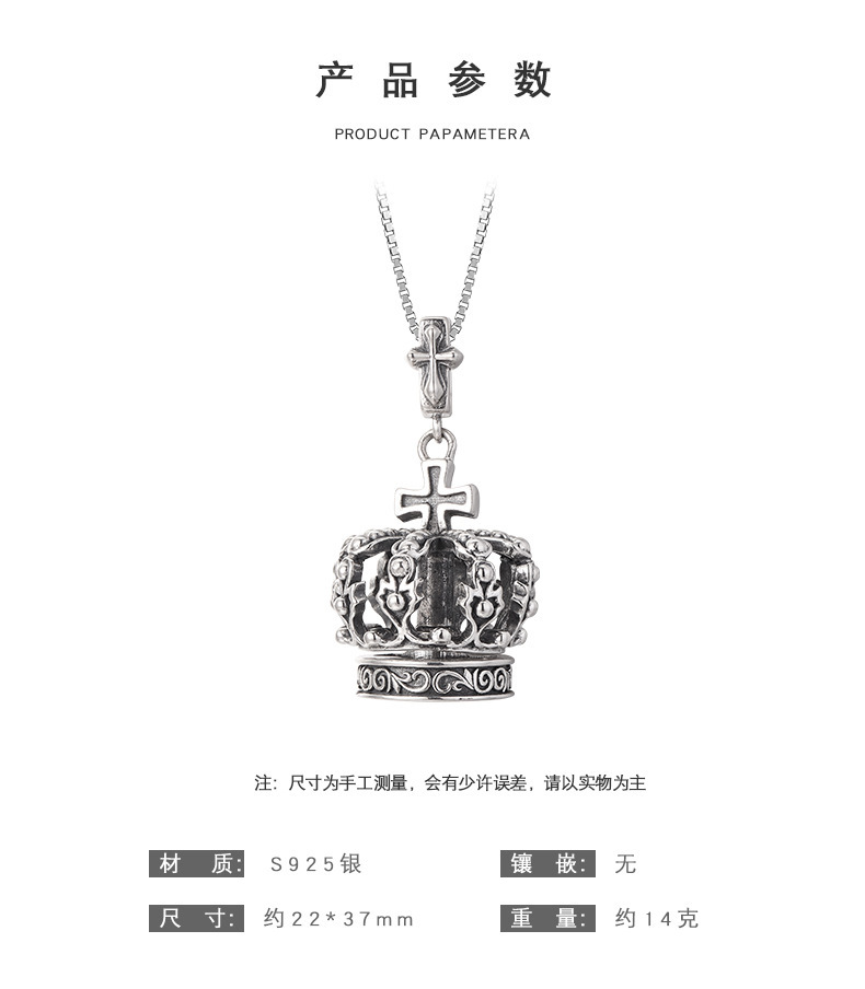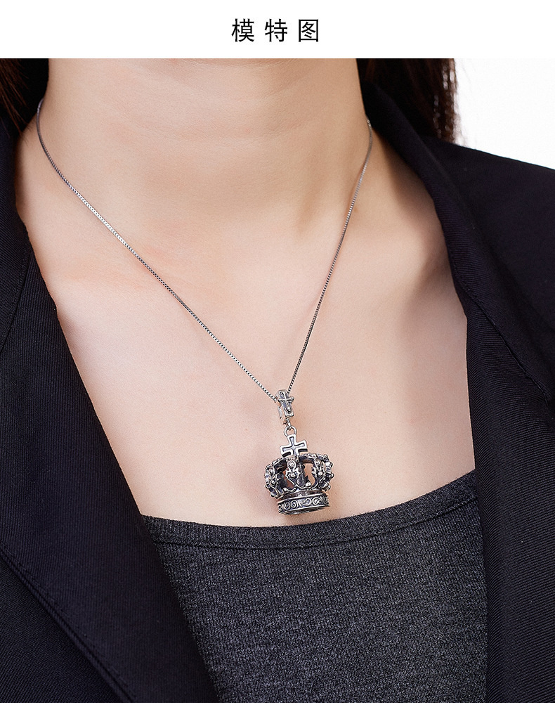 S925 Silver Cross Crown Pendant Niche Design Couple Sweater Necklace Men