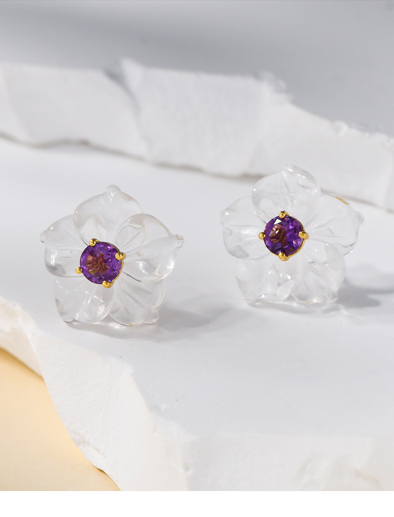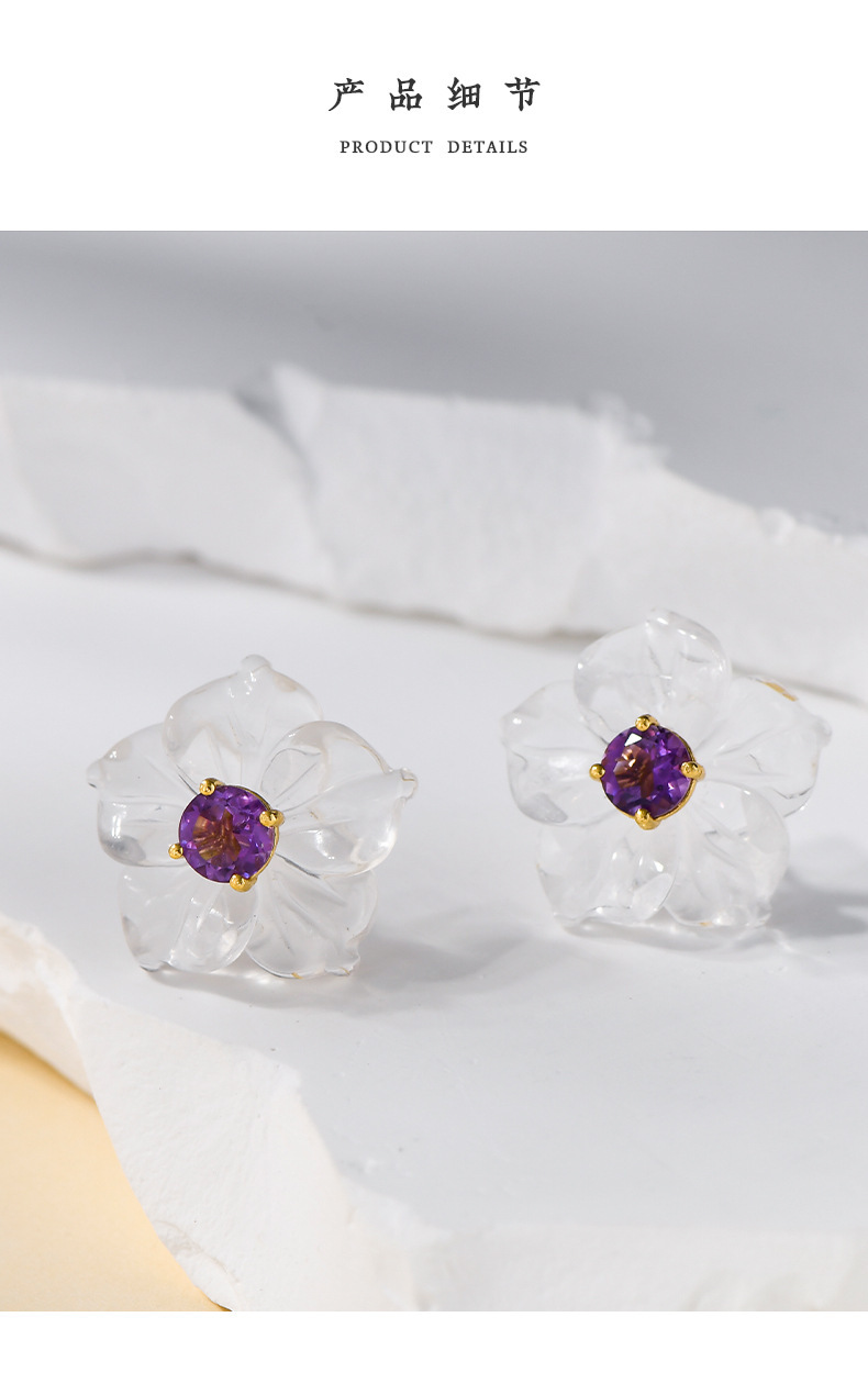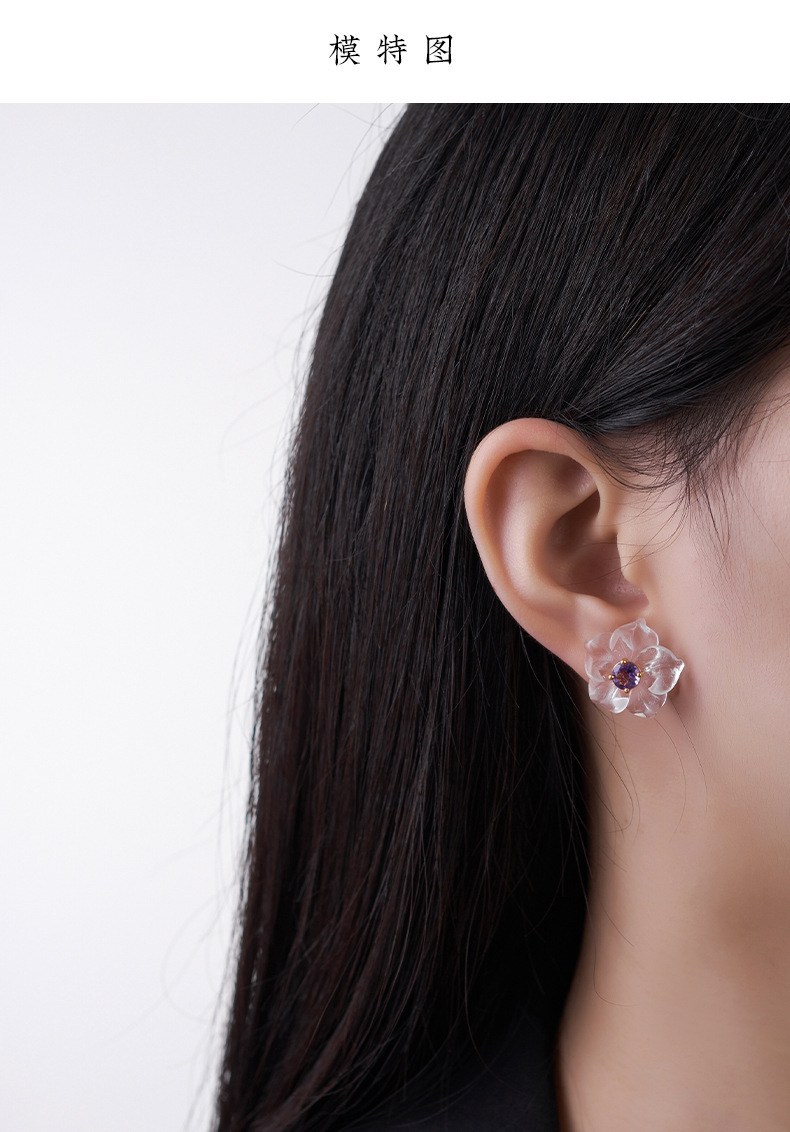 3D Flower Crystal Stud Earrings - 925 Silver Inlaid - Simple Temperament Fresh Design
