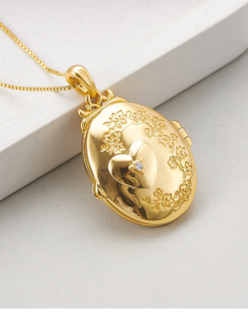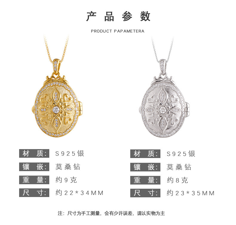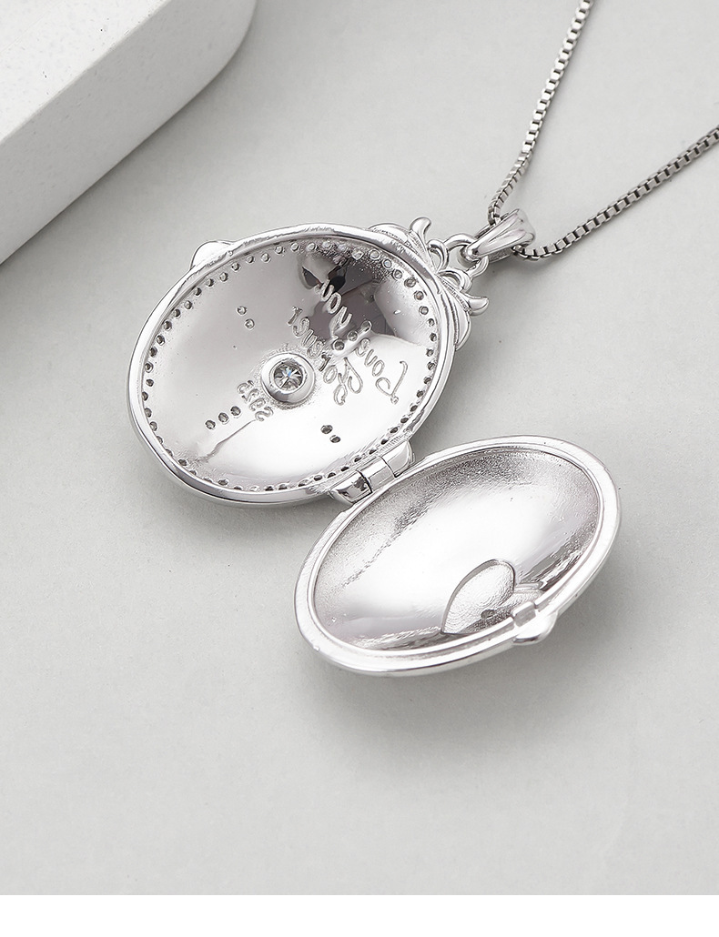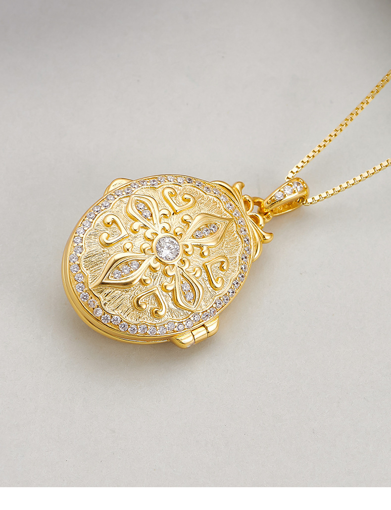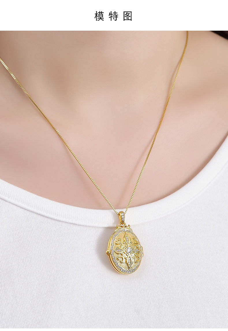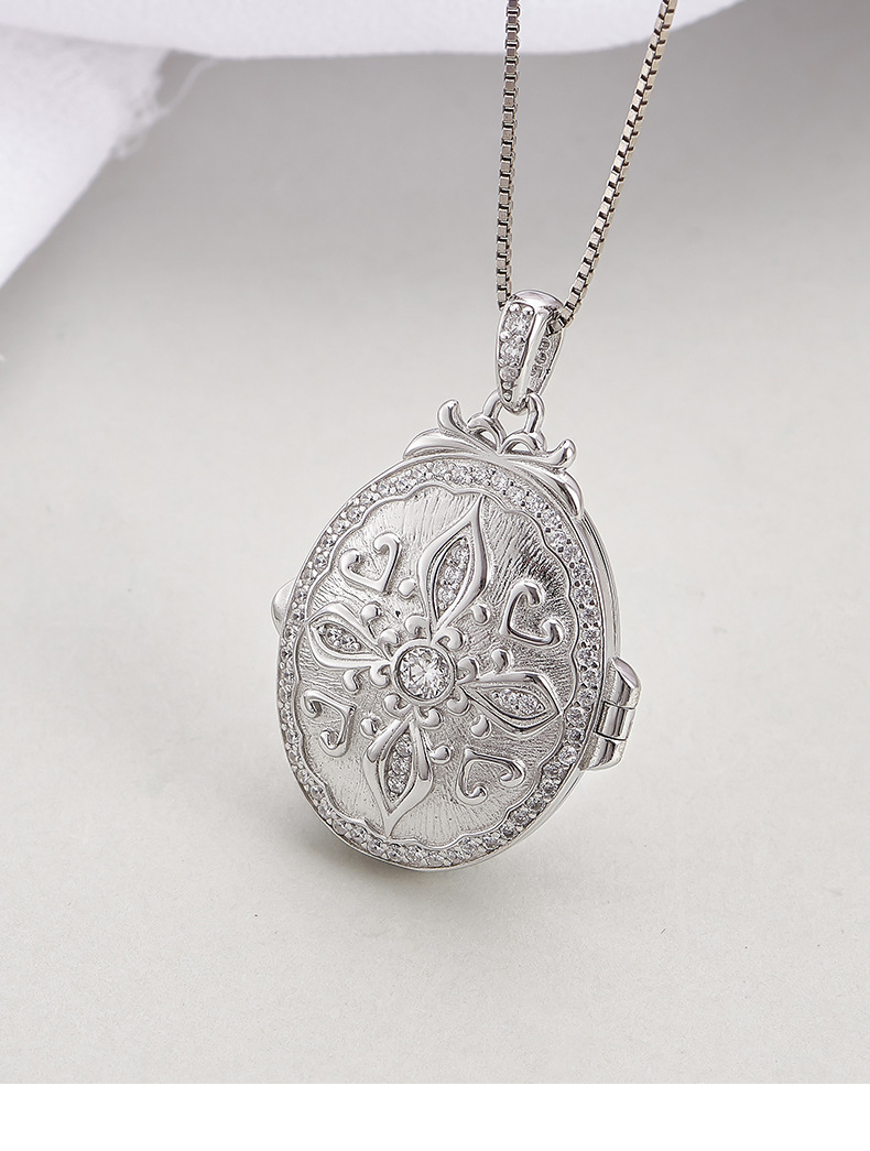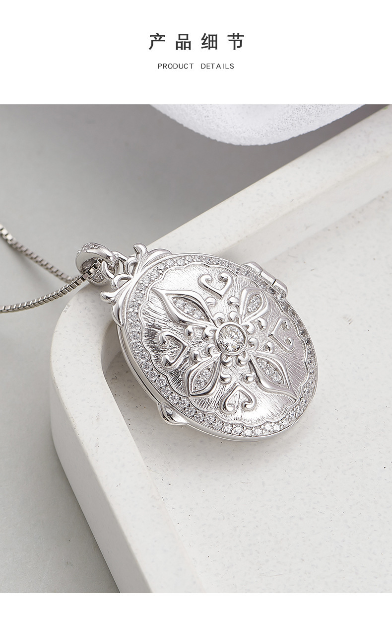 S925 silver pattern oval photo box heart-shaped couple necklace niche texture pendant can be opened for photos