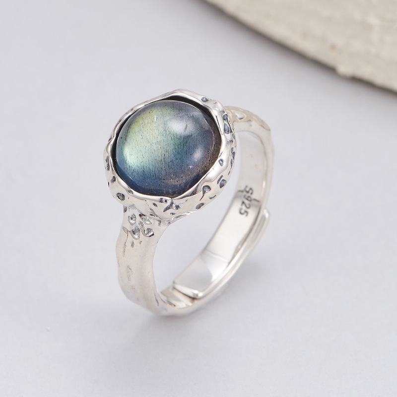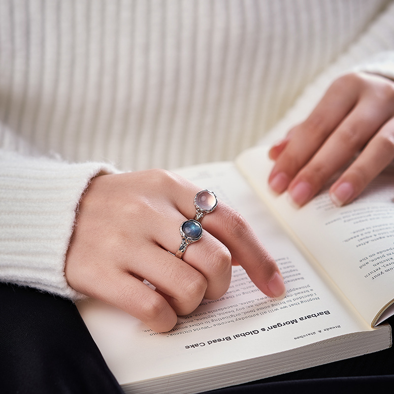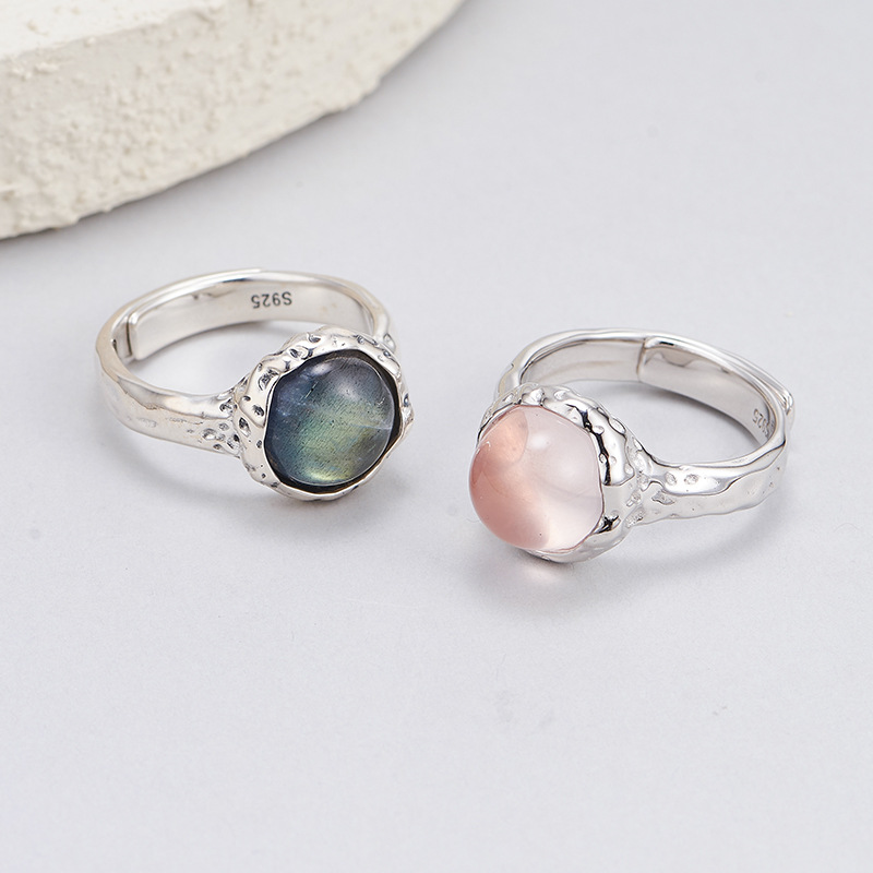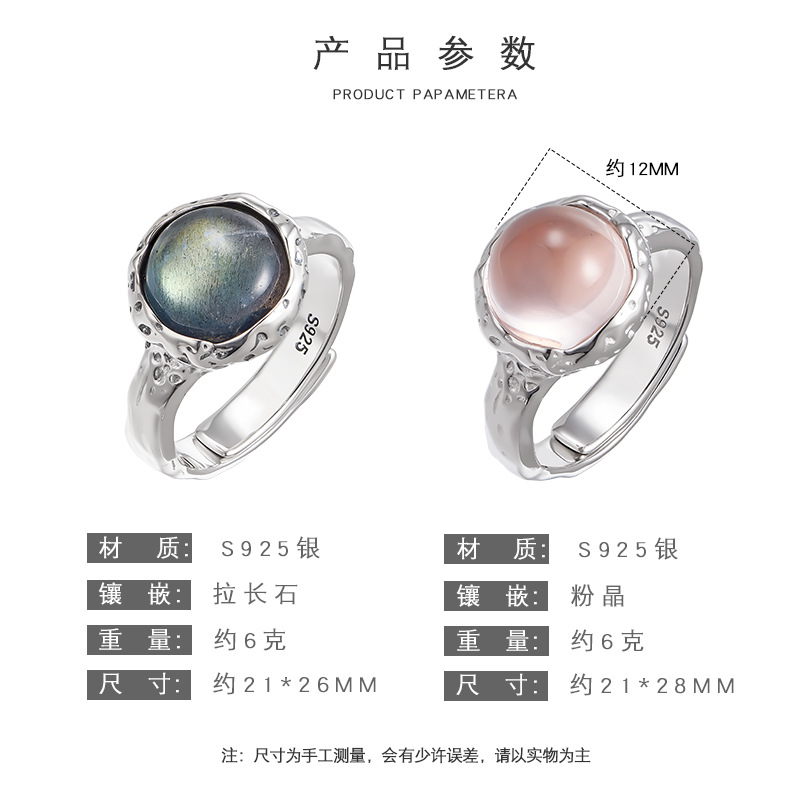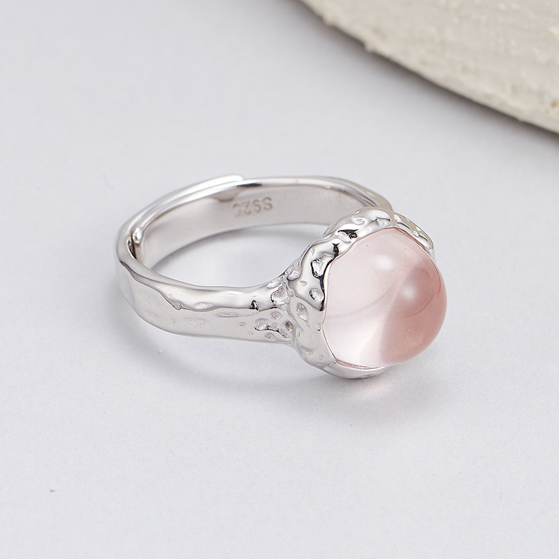S925 silver powder crystal ring texture compact geometric adjustable ring